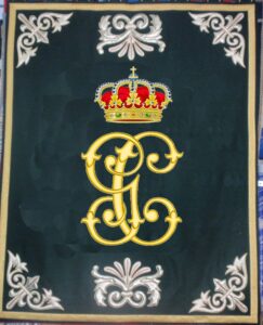 Detalle de bordado de un escudo de España en relieve